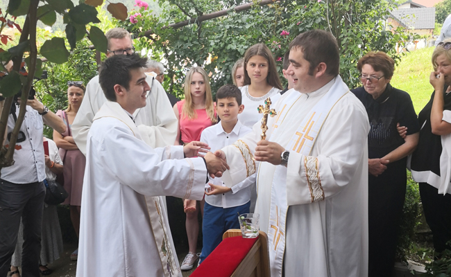 Zato on duguje vjernost i Bogu koji ga je odabrao i Crkvi, za koju je odabran, posvećen i poslan. Želim Ti da uvijek s velikom pobožnošću pristupaš stolu Gospodnjem, da propovijedaš Kristovo evanđelje s oduševljenjem, s uvjerenjem, s radošću, postojano i neumorno, zanesen i opijen Kristovom radošću, zaljubljen u Krista i Crkvu, zaljubljen u narod kojemu je poslan - zaključuje homiliju preč. Mikec.