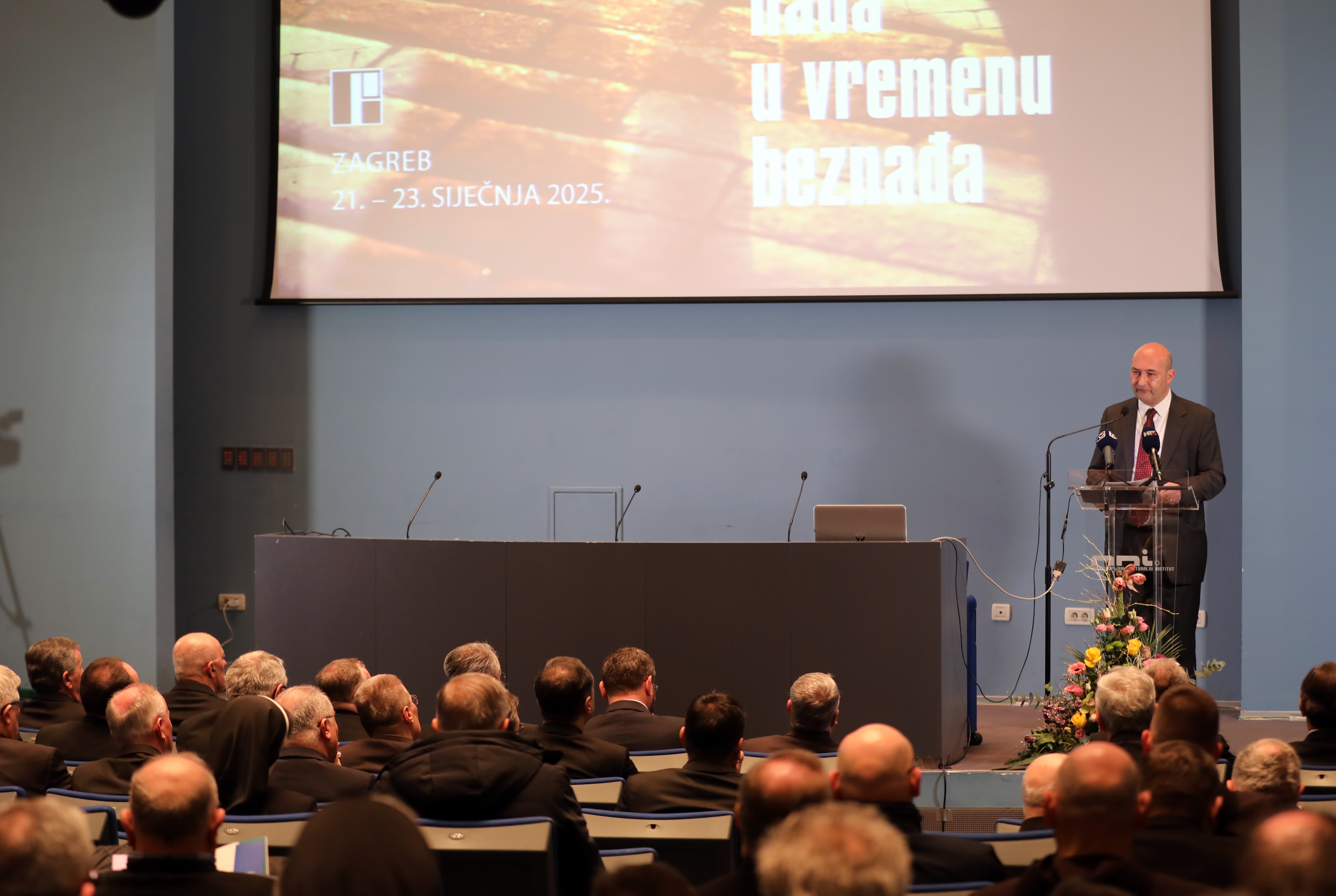 pozdravnih riječi istaknuo je da je "naše vrijeme obilježeno beznađem koje proizlazi iz pretjeranog oslanjanja na materijalni napredak i vanjske čimbenike - tehnologiju, znanost i društvene strukture - koji, unatoč svojim postignućima, nisu uspjeli ukloniti duboku ljudsku tjeskobu, neizvjesnost i strah. Beznađe je, u svojoj srži, duhovno stanje koje nastaje ondje gdje nedostaje Božje prisutnosti. Čovjek bez Boga često ostaje prazan i nesiguran, suočen s neizvjesnom budućnošću."