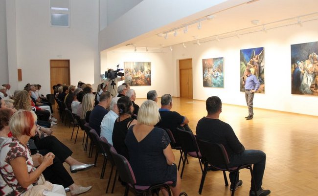 U svome govoru svake slike dotaknuo se don Anton Šuljić, pomoćnik direktora Kršćanske sadašnjosti, ujedno i književnik te likovni kritičar. Skrenuo je pozornost na izvrsnu upotrebu boja, igre svjetla i sjene, snagu prikaza određenih scena, kao što je Kristovo nošenje križa. Na svim slikama pozadina je vrlo tamna, a ljudski likovi su oni koji donose svjetlo (ovo se posebno odnosi na lik Krista). Potaknuo je autora da nastavi taj likovni, ali i duhovni put koji je započeo. Na samom kraju službeno je otvorio izložbu.