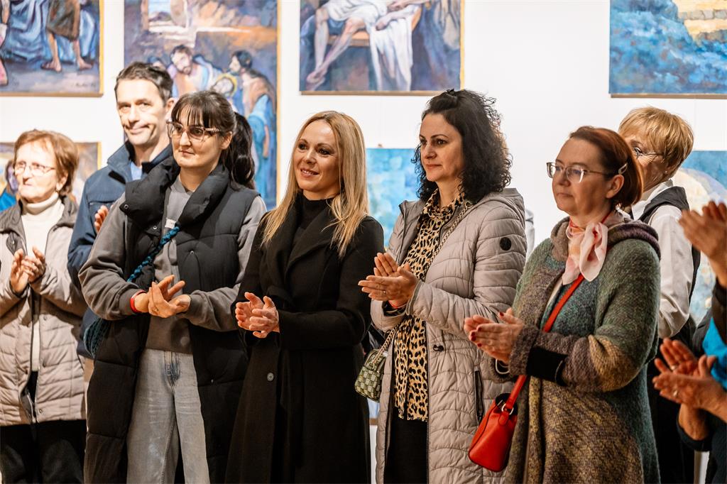 Izložbu je otvorila karlovačka županica Martina Furdek Hajdin. Uz čestitke autoru na otvorenju izložbe, županica je istaknula kako tema Križnoga puta iznova osnažuje i podsjeća na Spasiteljevu žrtvu podnesenu za nas, naglasivši želju da svetkovinu Uskrsa dočekamo u duhu vjere i nade, onako kako Bog od nas očekuje.