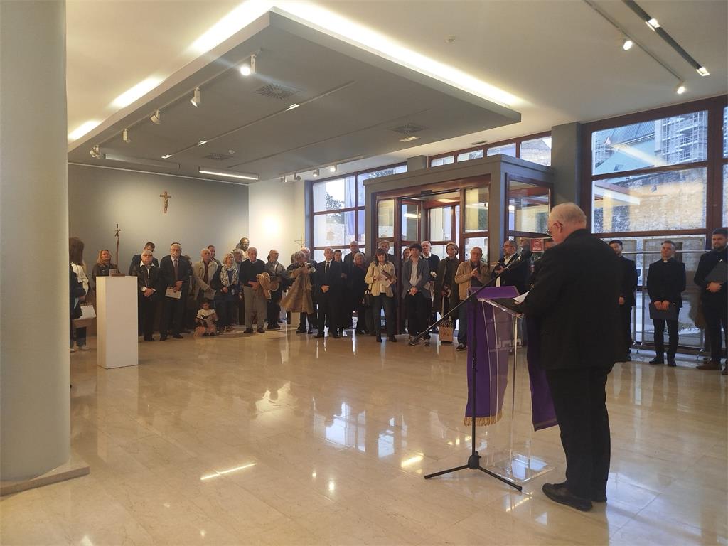 Izložbu je otvorio mons. Vlado Razum, pomoćni biskup zagrebački, koji je u svom obraćanju teološki progovorio o raspelima akademika Hrastea i o potrebi njegovanja sakralne umjetnosti.