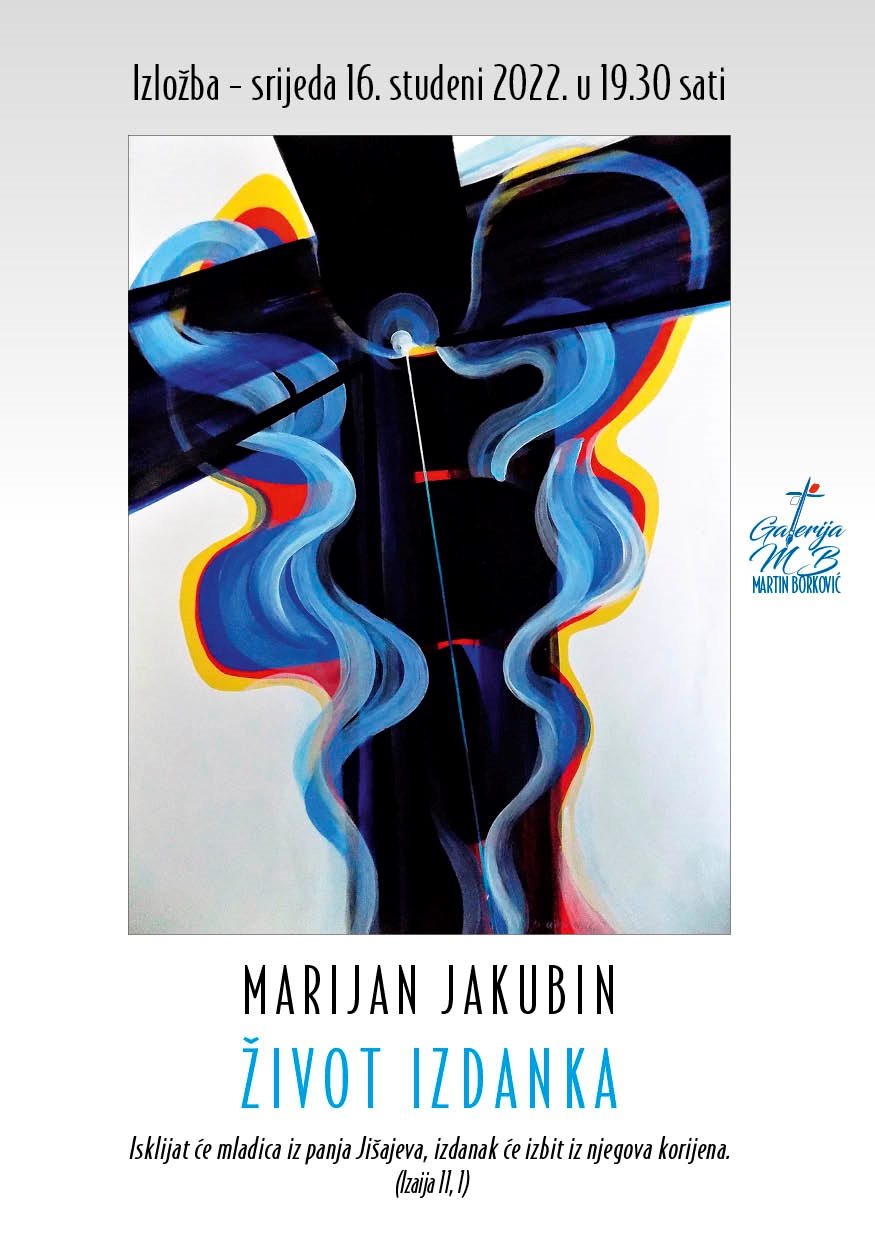 Izložba „Život Izdanka“ akademskog slikara Marijana Jakubina bit će otvorena u srijedu 16. studenog 2022. u Galeriji "Martin Borković" Nacionalnog svetišta svetog Josipa, Boškovićeva 36, Karlovac, nakon večernje svete mise koja počinje u 18.30 sati.