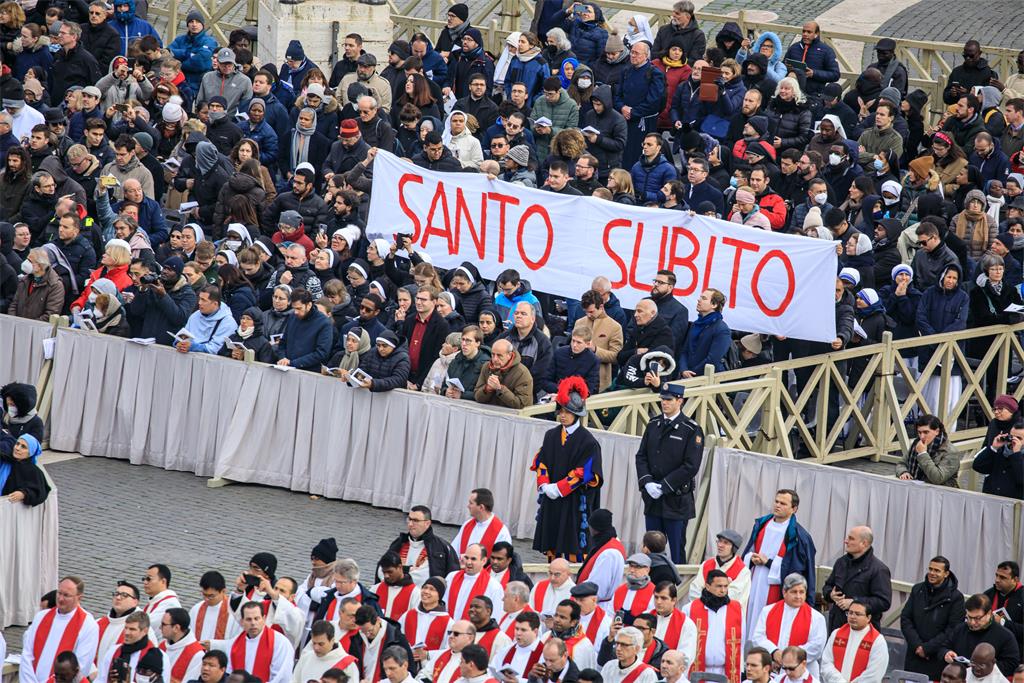 Među 50 tisuća okupljenih vjernika na Trgu sv. Petra i u Via della Conciliazione bili su i hodočasnici iz Hrvatske. Također su došle i skupine njemačkih hodočasnika. Neki od njih bili su odjeveni u narodne nošnje Benediktove rodne Bavarske, a nosili su i njemačke i bavarske zastave. Na trgu su se mogli vidjeti i transparenti „Santo subito“ i „Danke Papst Benedikt!“ Na kraju slavlja, prije nego li su papa Franjo i suslavitelji ušli u baziliku sv. Petra, iz mnoštva su se čuli uzvici: „Santo subito!“ (Odmah svetac!) i „Benedetto!“