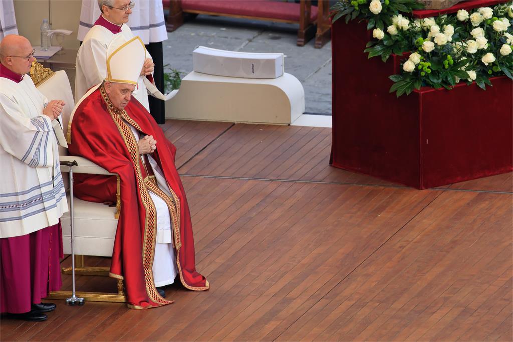 Prije početka euharistijskog slavlja papu Franju su u kolicima dovezli do sedesa i odjenuli ga crvenom štolom i plaštem. Potom su ostali suslavitelji, među kojima patrijarsi i kardinali, sa služiteljima, u procesiji iz bazilike došli na mjesto slavlja. Papa Franjo je sa sedesa ispred oltara predvodio uvodne obrede. Prvo čitanje iz Knjige proroka Izaije (29, 16 – 19) naviješteno je na španjolskom, Psalam 22 otpjevan je na latinskom, a drugo čitanje Prve Petrove poslanice (1, 3 – 9) pročitano je na engleskom jeziku.