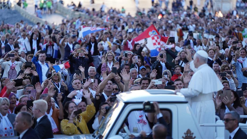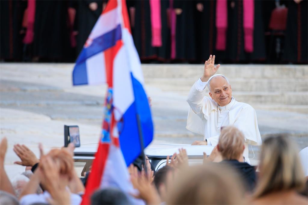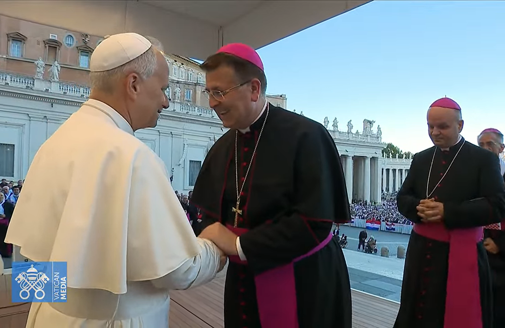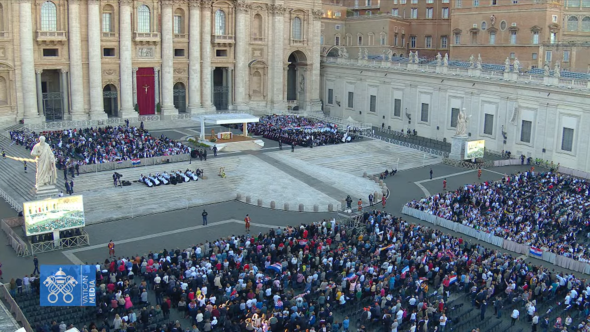 Dragi hrvatski hodočasnici, s velikom radošću želim vam dobrodošlicu na Trg sv. Petra, kamo ste pristigli povodom nacionalnog hodočašća u Jubilejskoj godini. Vaša brojna i molitvena prisutnost znak je žive vjere vašega naroda, koji je kroz stoljeća ostao čvrst u zajedništvu s Crkvom i vjeran Nasljedniku apostola Petra.