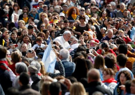 Prije audijencije po običaju se otvorenim džipom provezao Trgom Sv. Petra, uzimajući na ruke i ljubeći djecu, koju su mu pružali vatikanski redarstvenici. Jedno se dijete prestrašilo i počelo plakati pa ga je Papa pokušao smiriti što su brojni fotografi i kamermani spremno zabilježili.