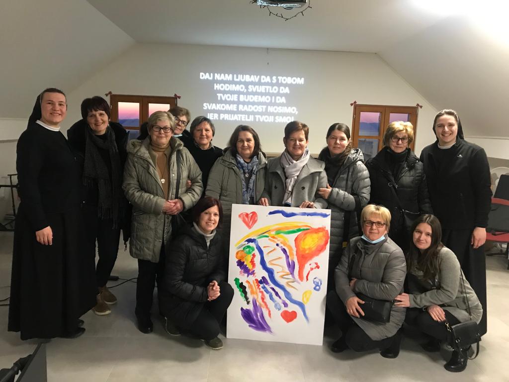 Na početku susreta okupljene je pozdravio upravitelj župe vlč. Marko Baršić, iskazujući svoju podršku radu skupine u pastoralu na župi. Nakon molitvenog početka pjevajući himan na melodiju himne PMI. Na improviziranom štafelaju, kojega je kao i razne boje donijela sestra Kristina, svaki je od članova zajednice koristio boje i potezima kistom izražavao svoje viđenje djelovanja PMI u župi.