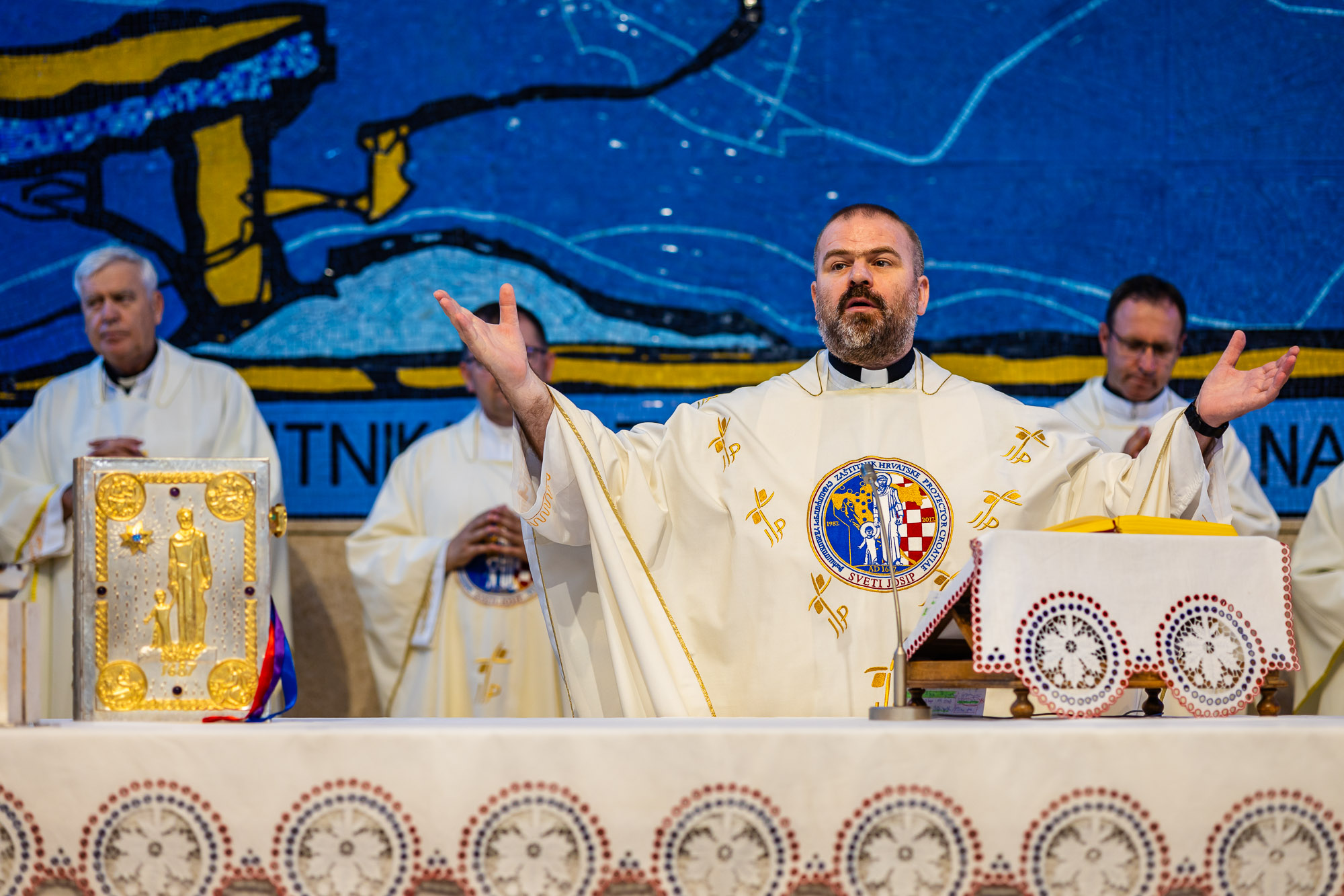 Pozdravljajući okupljene vjernike mons. Sente kazao je "kako je ovih dana u arhivu Svetišta pronašao prijedlog za osnivanjem Saveza štovatelja svetog Josipa iz osamdesetih godina prošlog stoljeća. Koliko mi je poznato, tada taj savez nije zaživio, ali možemo reći da je po ovoj zajednici molitvenih vjenčića Prečistog Srca Josipova ta ideja zaživjela. Molitveni vijenac Prečistog Srca Josipova satkan je od 180 vjenčića, odnosno preko sedam tisuća članova, čija su imena zapisana u uredu Josipova svetišta i koji su se obvezali da će jedanput mjesečno sudjelovati na misnom slavlju, ispovijedi i pričesti, te aktivno sudjelovati u pobožnosti svetom Josipu. To je uistinu velika duhovna snaga zbog koje možemo optimističnije gledati na budućnost naše domovine Hrvatske. Bogu hvala i na trudu vas članova Josipovih vjenčića, ta se pobožnost širi po Bosni i Hercegovini, Austriji, Njemačkoj i Švicarskoj. U nju su se uključili i neki austrijski svećenici. Susret i molitvena aktivnost današnjih Josipovih štovatelja o 337. obljetnici izbora svetog Josipa za zaštitnika Hrvatske s jedne strane nam svjedoči o živoj vjeri nadahnutoj na Josipovoj vjernosti Bogu danas, ali i o kontinuitetu tradicije čašćenja svetog Josipa u hrvatskom narodu", kazao je na početku misnog slavlja mons. Sente.