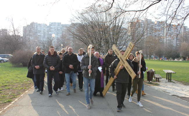 Tekst križnoga puta mons. Tomislava Ivančića okupljenom vjernom puku pročitali su predstavnici zajednica unutar župe: Molitveni vijenac Kraljice Obitelji, Marijina Legija, Molitvena zajednica blaženoga Alojzija Stepinca, Zajednica mladih, Obiteljska zajednica, Zajednica čitača i djeca.