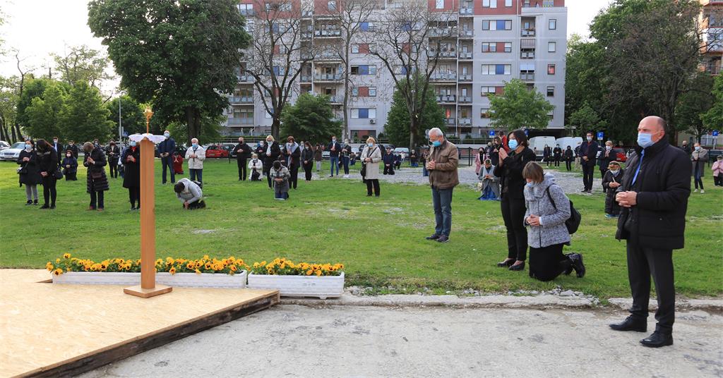 Budući da župna zajednica nema svoju crkvu, sve mise se održavaju na župnom zemljištu na križanju Zagrebačke ulice i Zagrebačke avenije.