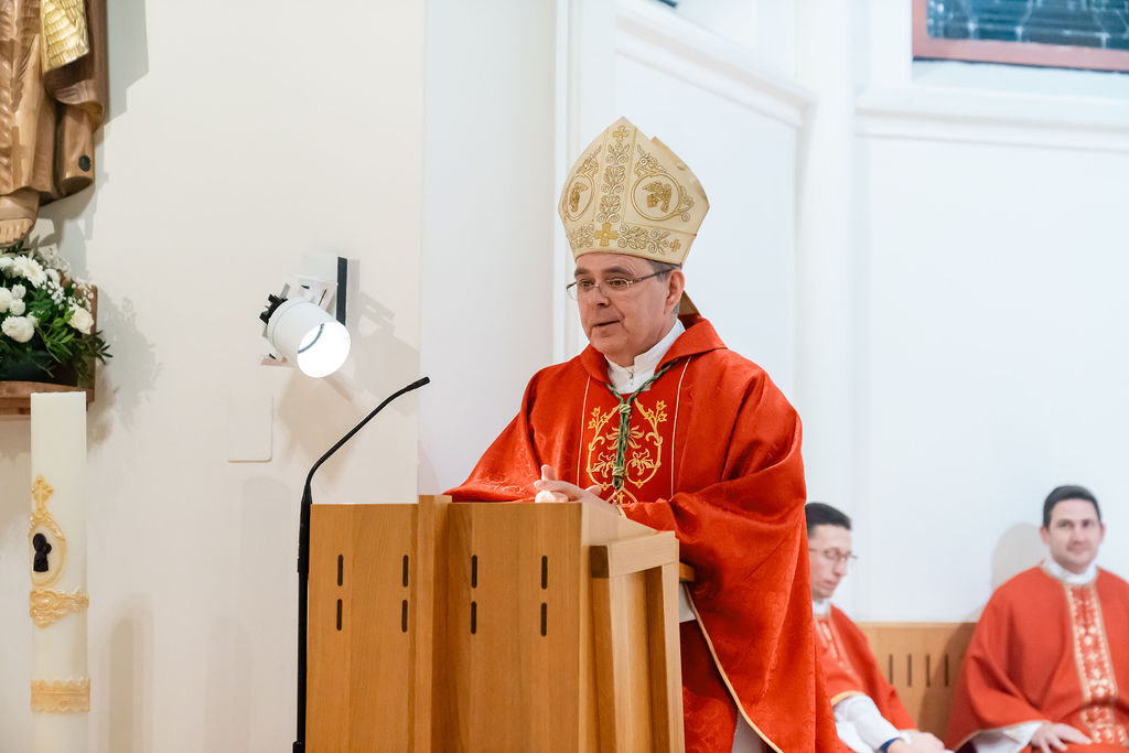 Biskup Radoš u homiliji je naglasio kako je postavljanje u službu lektora i akolita novi korak u služenju i slijeđenju Gospodina. U obraćanju budućim lektorima biskup Radoš istaknuo je da dok naviještaju Riječ Gospodnju, neka ona najprije prosvijetli njihova srca, da potom preko njih dotakne i one koji slušaju. Buduće akolite podsjetio je kako ovom službom preuzimaju odgovornost služenja Kristu na poseban način - s ljubavlju i revnošću, blizu oltara.