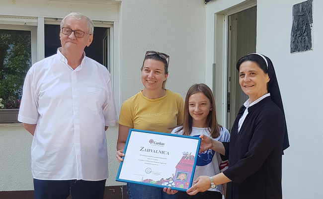 Ravnateljica Caritasa Zagrebačke nadbiskupije s. Jelena Lončar susrela se s voditeljem Hrvatske katoličke zajednice Karlsruhe don Ivom Nedićem i pastoralnom suradnicom Đurđicom Trputec, u Caritasovom domu za djecu bez roditeljske skrbi u Vugrovcu, u srijedu 29. srpnja 2020. godine. Tom prigodom don Ivo je ravnateljici Caritasa Zagrebačke nadbiskupije uručio donaciju u iznosu od 8.500,00 eura, prikupljenu u HKZ Karlsruhe za obnovu u potresu stradalog doma u Vugrovcu.