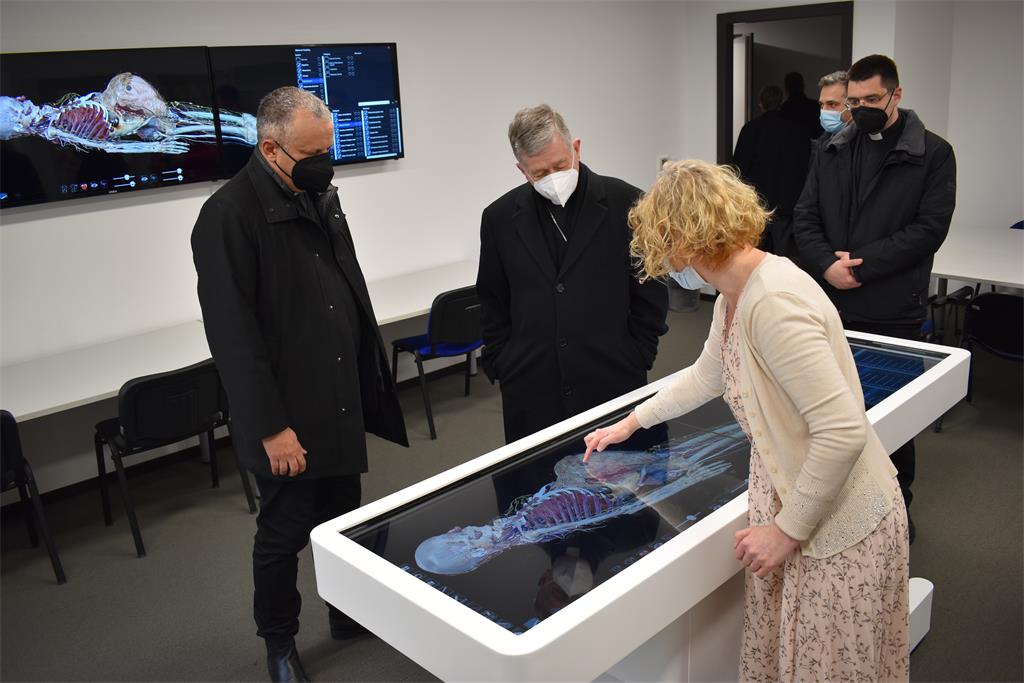 Rektor Tanjić pokazao je kardinalu Cupichu prostore Hrvatskog katoličkog sveučilišta: Veliku dvoranu, prostore Medicinskog fakulteta, Laboratorij za psihologijska istraživanja, prostore budućeg televizijskog i radijskog studija...