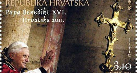 Hrvatska pošta će 4. travnja pustiti u optjecaj prigodnu poštansku marku "Pohod pape Benedikta XVI. Hrvatskoj". Marka je izdana u povodu posjeta Svetog Oca Republici Hrvatskoj, koji će biti 4. i 5. lipnja.