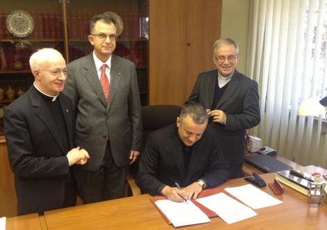 U nazočnosti prorektora za međunarodnu suradnju, prof. dr. sc. Emilija Marina s Hrvatskog katoličkog sveučilišta, i prorektora s Papinskog salezijanskog sveučilišta, prof. dr. sc. Gianfranca Coffelea, sporazum s Papinskim salezijanskim sveučilištem potpisali su rektor Hrvatskog katoličkog sveučilišta prof. dr. sc. Željko Tanjić i rektor Papinskog salezijanskog sveučilišta prof. dr. sc. Carlo Nanni.