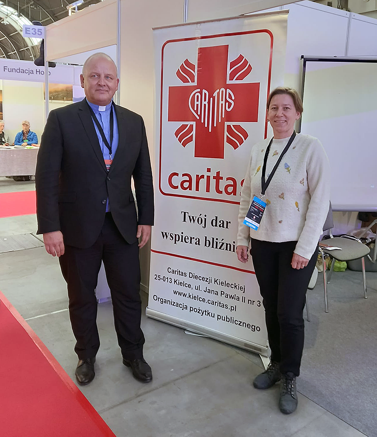 U okviru programa organiziran je i posjet Regionalnom volonterskom centru u Kielcu, te posjet Sajmu nevladinih organizacija koje djeluju u Poljskoj. Jedan od izlagača na Sajmu bio je i Caritas Biskupije Kielce, koji je predstavnicu zagrebačkog Caritasa pozvao da ga posjeti i upozna njegov rad i djelovanje. Gđi Juratovac pridružio se gosp. Borković te su zajedno obišli ustanove i prostore u kojima Caritas pruža pomoć potrebitima: Ured za upravljanje, Prozor života za ostavljenu novorođenčad, Hospicij sv. Majke Tereze iz Kalkute za pružanje pomoći bolesnima i Dnevni boravak za djecu koja tijekom popodneva na ovome mjestu provode vrijeme u druženju, društvenim igrama i sportskim aktivnostima. Također su vidjeli Dnevni boravak za starije i nemoćne osobe, radno-okupacijske radionice, dječji vrtić i prostore u kojima Caritasove zaposlene osobe s invaliditetom izrađuju rukotvorine. Caritas Biskupije Kielce djeluje od 1989. godine i svojim radom pruža pomoć potrebnima - od najmlađih do najstarijih - posebice najranjivijim skupinama.
