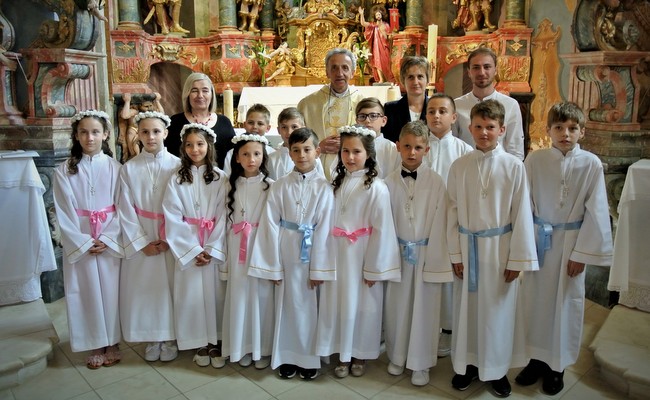 U nedjelju, 15. svibnja na misnom slavlju u župnoj crkvi sv. Marije Snježne u Belcu trinaestero djece primilo je Prvu svetu pričest, a tijekom misnog slavlja preč. Milan Pušec krstio je malenu Mariju, peto dijete obitelji Čižmek. Razmatrajući riječi Svetoga pisma, u svojoj homiliji preč. Pušec istaknuo je primjer Isusove ljubavi prema bližnjem koji smo pozvani slijediti na životnom putu na koji prvopričesnici od danas kreću u zajedništvu s Isusom.