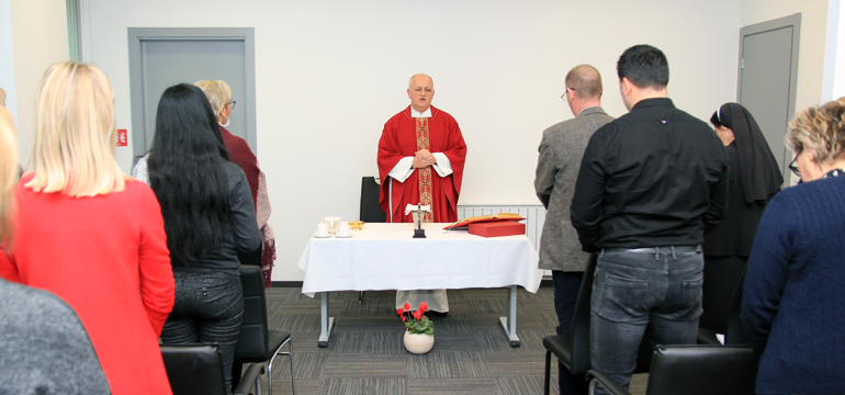 Zaposlenici Caritasa koji rade u službama na adresi Babonićeva 121 zajedno s ravnateljicom i članovima kolegija 13. prosinca susreli su se s predsjednikom Caritasa mons. Zlatkom Korenom na predbožićnoj duhovnoj obnovi i zajedničkoj Euharistiji
