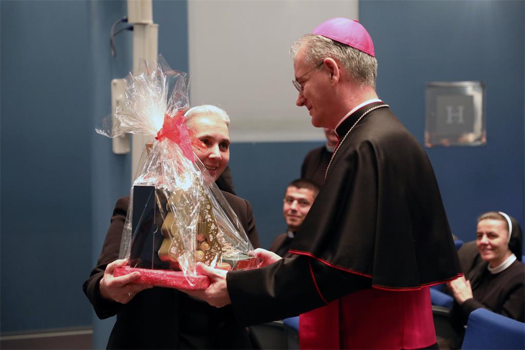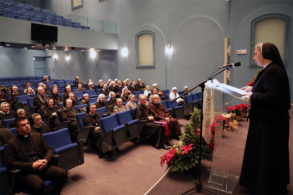 Uime redovnica i članica ustanova posvećenog života i družbi apostolskog života božićnu čestitku nadbiskupu Kutleši izrekla je s. M. Anđa Vranješ, vrhovna glavarica Služavki Maloga Isusa. Kazala je kako "Božić i Božićno vrijeme, a napose u Svetoj godini, posebno je milosno vrijeme koje nas poziva da poput pastira vjerom pohitimo u Betlehem i susretnemo se s Isusom Kristom, Bogočovjekom Spasiteljem ljudi koji nam se objavio u liku malenoga Djeteta. U susretu s Njim otkrivamo svoj ljudski i kršćanski identitet, živimo preobraženim životom i postajemo navjestitelji Radosne vijesti, mira, radosti i nade ovome svijetu. Baš kao pastiri, puni zanosa i oduševljenja koji su bili ohrabreni anđelovim riječima ,,Ne bojte se! Evo javljam vam Blagovijest, veliku radost za sav narod! Danas vam se u gradu Davidovu rodio Spasitelj - Krist Gospodin'', pozvani smo poticati jedni druge na hodočasnički put nade i zajedno hoditi u ljubavi prema Bogu i bližnjemu s kojim se poistovjetio sam Isus Krist, Spasitelj."
