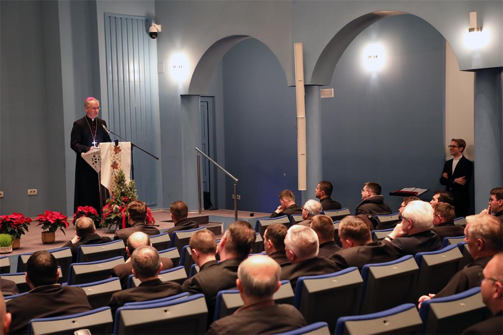 Predbožićni susret svećenika, redovnika i đakona sa zagrebačkim nadbiskupom mons. Draženom Kutlešom održan je u dvorani "Vijenac" Nadbiskupijskog pastoralnog instituta u četvrtak 19. prosinca 2024. Uz nadbiskupa Kutlešu, susretu su nazočili zagrebački nadbiskup u miru kardinal Josip Bozanić te zagrebački pomoćni biskupi mons. Ivan Šaško i mons. Mijo Gorski.