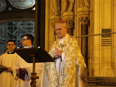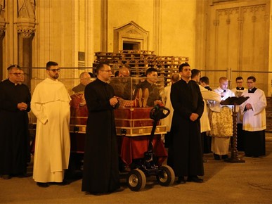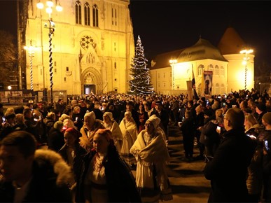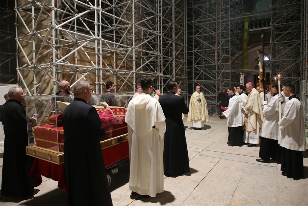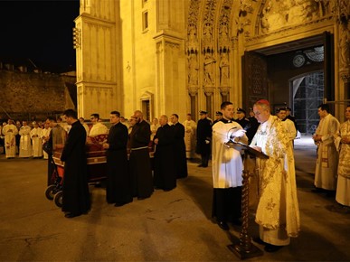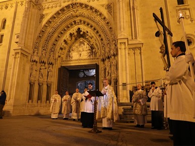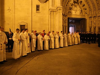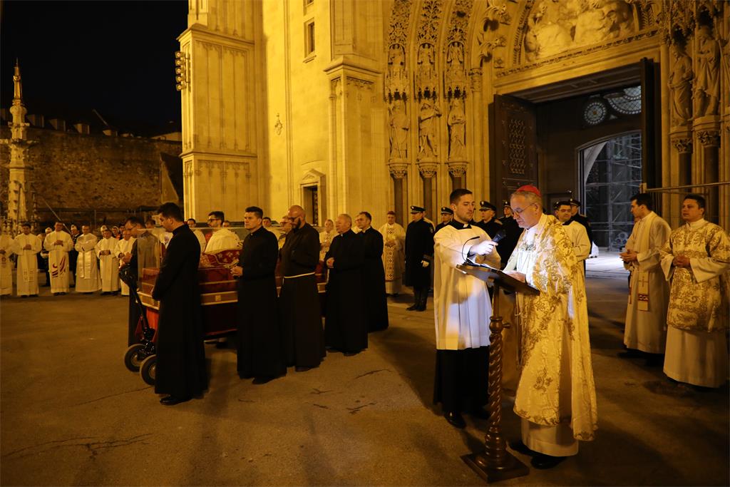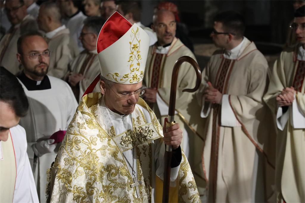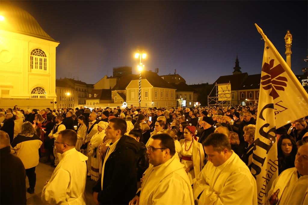 "Uputili smo se iz naše ranjene katedrale slijedeći križ i evanđelistar i noseći u hodočasničkoj povorci relikvije blaženog Alojzija Stepinca. Kristov križ, sidro spasenja i znak nade koja ne razočarava, te evanđelistar, škrinja žive Riječi Uskrsloga, stajali su na čelu naše hodočasničke povorke. Tu povorku, znak zajedništva Zagrebačke Crkve, osnažili smo znakovitom prisutnošću njezina zaslužnog pastira Alojzija. Rekao bih da ovo naše kratko hodočašće u sebi nosi dugu povijest Zagrebačke nadbiskupije i podsjeća nas na hodočašća kakva je poduzimao izabrani Božji narod slijedeći Božji glas na putu prema Obećanoj zemlji", rekao je mons. Kutleša na početku homilije.
