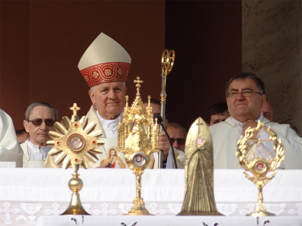 Pozvao je i na molitvu da se što veći broj suvremenika, poglavito sunarodnjaka, koji nisu upoznali i ne znaju dovoljni cijeniti Božje milosrđe „otvore djelovanju Duha Svetoga, te dožive, kao i mi, radost i mir u svojim srcima, i novu duhovnu snagu za činjenje djelâ milosrđa – duhovnih i tjelesnih.“ „Neka sveta Faustina i dragi nam sveti papa Ivan Pavao II. budu zagovornici svakog od nas i neka nam pomognu da nebesko kraljevstvo nikada ne izgubimo iz vida i da – poput njih – u svome životu uvijek Boga stavljamo na prvo mjesto! Neka je Bog prvi!“, rekao je biskup, zaključujući: „Kao vaš brat u istoj vjeri i suradnik vaše radosti (usp. 2 Kor 1, 24), zahvaljujem Vam ovom prigodom svima, za vaše osobno i zajedničko čašćenje Božjeg milosrđa, milosrđa Kristovog, za vaše pouzdanje u Božje milosrđe, kako nam je svojim primjerom pokazala sveta redovnica Faustina. Želim vam da ove jednostavne riječi: „Isuse, uzdam se u tebe“, koje stoje ispisane na brojnim većim ili manjim slikama Milosrdnog Isusa, po vašim domovima i stanovima, na vašem radnom stolu ili u vašem molitveniku – da te riječi i ubuduće naznačuju – za vaša srca i za srca drugih ljudi koji ih budu čitali – jedan jasni putokaz, jasni orijentir, prema kojem ćete se ravnati i morati dalje hoditi na svome zemaljskom hodočašću.“