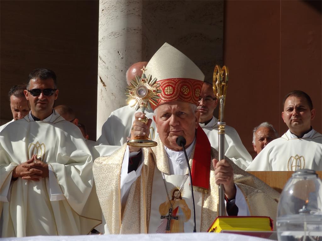 Biskup je zatim govorio o sv. Faustini Kowalskoj, promicateljici i posrednici poruke o Božjemu milosrđu, rekavši kako se u životu Kristove Crkve ništa ne događa bez Božje Providnosti, a ona se pobrinula da se prije osam desetljeća jedna skromna siromašna djevojka iz drevnog i vjernog katoličkog poljskog naroda oduševila za redovnički stalež i prihvatila izuzetnu zadaću upozoriti sve ljude i narode Europe i svijeta na veliku tajnu Božjeg milosrđa. „Mistična iskustva svete Faustine jasno nam pokazuju da Božje milosrđe objavljuje u bitnome ovu istinu: dobro nadvladava zlo; život je jači od smrti, ljubav je Božja moćnija od grijeha nas ljudi“, rekao je biskup te dodao kako se svi štovatelji Božjega milosrđa, svi vjernici trebaju potruditi i sami prakticirati milosrđe i praštanje, jer: „spirala mržnje, i nasilja i želje za osvećivanjem koja kalja životne staze mnogih pojedinaca u našem životnom okruženju, pa čak i staze mnogih naroda, ta se spirala može prekinuti, prelomiti samo čudom opraštanja!“