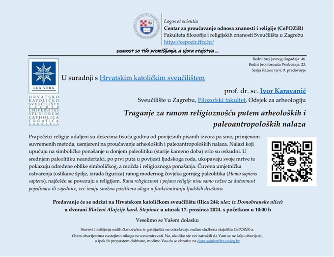 Predavanje prof. dr. sc. Ivora Karavanića (Sveučilište u Zagrebu, Filozofski fakultet, Odsjek za arheologiju) održat će se na Hrvatskom katoličkom sveučilištu (Ilica 244; ulaz iz Domobranske ulice) u dvorani „Blaženi Alojzije kard. Stepinac“ u utorak 17. prosinca 2024. s početkom u 10 sati.