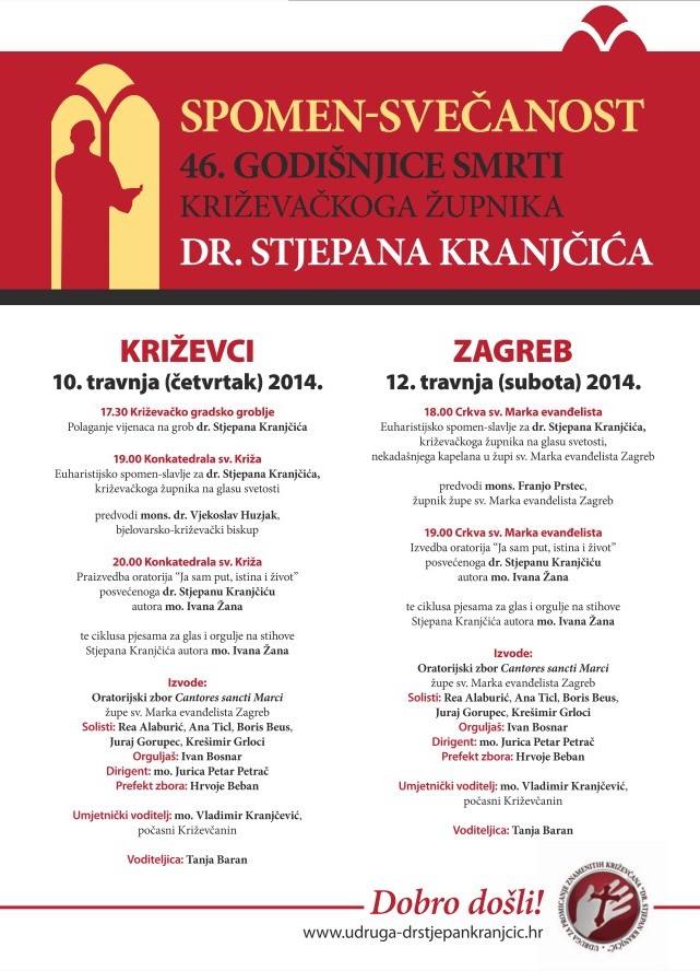Spomen-sjećanje na križevačkoga župnika na glasu svetosti dr. Stjepana Kranjčića bit će održano u Križevcima na dan 46. godišnjice njegove smrti u četvrtak 10. travnja te u Zagrebu, u crkvi sv. Marka na Gornjem gradu gdje je Kranjčić bio kapelan, dva dana poslije, 12. travnja 2014.