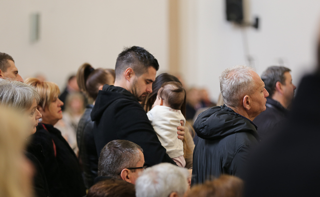 Pozdravni govor i riječ dobrodošlice kardinalu Josipu Bozaniću uputili su župljani Niko Pavlinović, predstavnik mladih i Jakov Mamić, vjeroučitelj, suprug i otac petero djece.