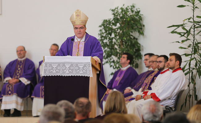 S eshatoloških obzora, kardinal Bozanić u svojoj se homiliji prisjetio povijesnog vremena u kojem se rađala župna zajednica i pripremali administrativno-pravni temelji nove župe. Istaknuvši strah i nadu, kao dominantne emocije koje su vladale u godinama neposredno nakon završetka Domovinskog rat, kardinal se osvrnuo na davnu 2002. godinu i blagoslov gradilišta na kojem je nastala današnja župna crkva i pastoralni centar. Vizionarski duh i nepokolebljiva vjera pokojnog vlč. Franje Juraka trajno je svjedočanstvo o Crkvi koja se ne želi zatvoriti u nemogućnost niti posustati pred zaprekama, bez obzira na njihov intenzitet i domet, upozorio je kardinal u svojoj homiliji.