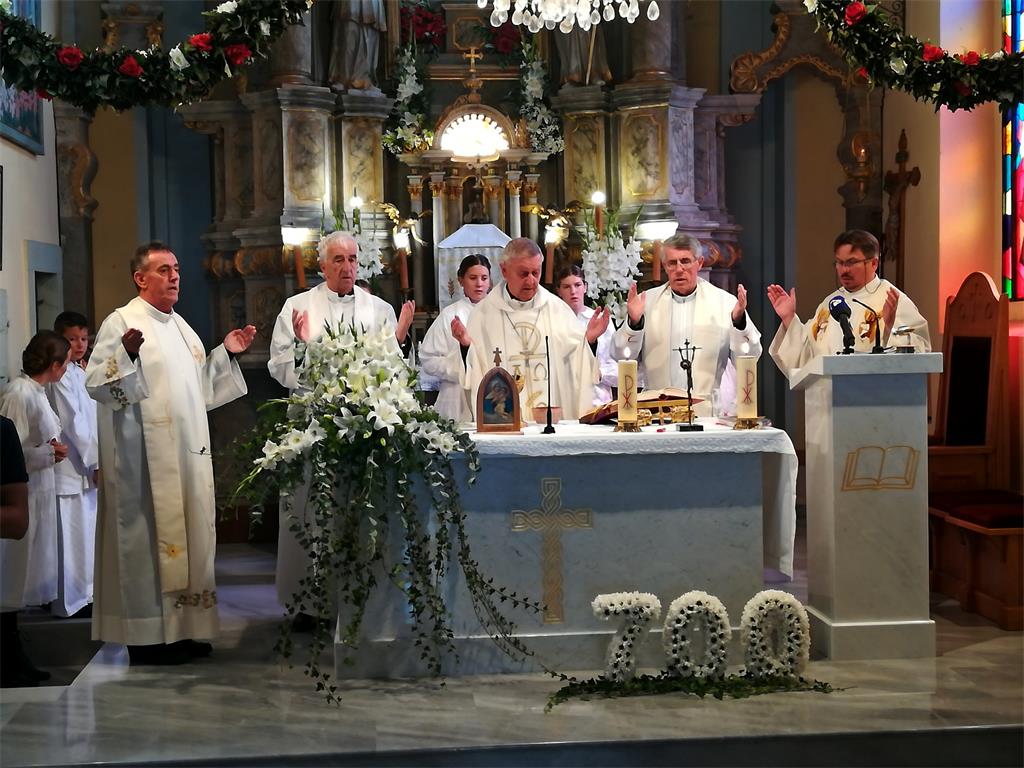 Mons. Mrzljak u homiliji je ponovio riječi svetog Ivana Pavla Drugog da je dobro slaviti jubileje i obljetnice, a to znači zahvaliti i prepoznati Božju mudrost te nastavio: "Nedjeljom slušamo riječ Božju. Znači li ona za nas ljude 21. stoljeća zastarjelost ili napredak? Mi se uzdajemo u znanost, u napredak i to je dobro, ali ako čovjek ne napreduje u dobroti, onda se rađa razdor, sebeljublje... A znamo da ono što je Isus tada govorio učenicima nije zastarjelo, ograničeno, već je to put kako živjeti Božju mudrost. Taj put nije lagan put, ali je zato pravi i ispravni put. To su nam pokazale generacije kroz ovih 700 godina župe koje su shvaćale mudrost odozgo, često u siromaštvu i u bijedi. Ni apostoli nisu odmah shvatili što je Isusovo poslanje ovdje na zemlji i što je njihov zadatak. Mislili su da budu kakvi ministri ili na veće pozicije u društvu, ali pohranjivanjem Božje riječi u svoja srca poput Marije oni su shvatili što je Isusovo i njihovo poslanje ovdje na zemlji, pa su Božjom riječju produbili i učvrstili svoju vjeru, prepoznali Božju mudrost.“