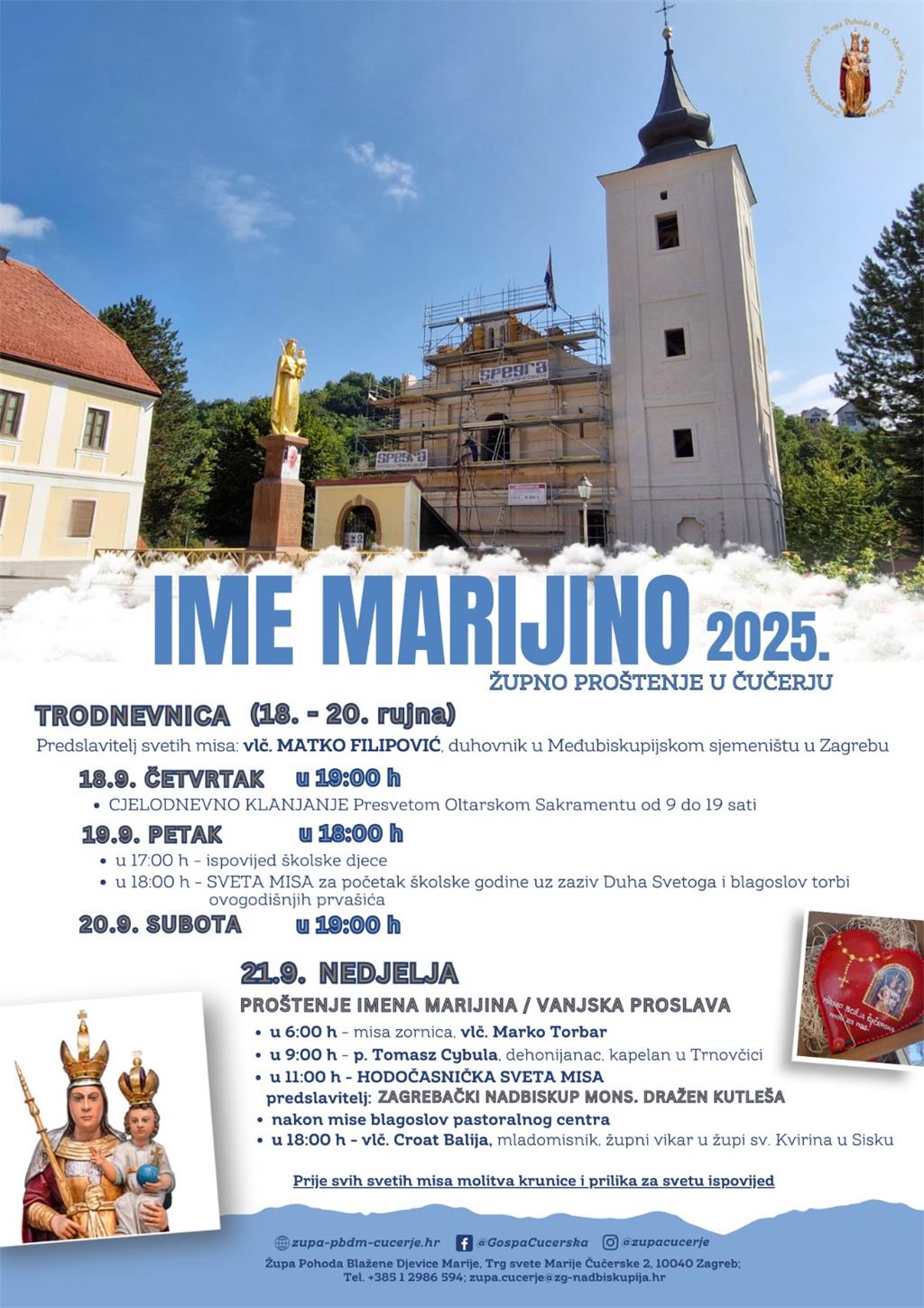 Svečano misno slavlje povodom blagdana Imena Marijinog u Čučerju u nedjelju 21. rujna u 11 sati predvodit će zagrebački nadbiskup mons. Dražen Kutleša.