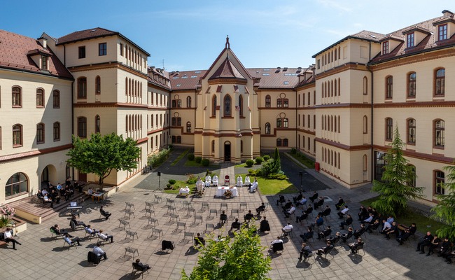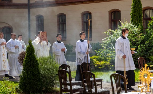 Proslava Tijelova završila je svečanom pjevanom Večernjom časoslova u zajedništvu cijele bogoslovne zajednice u dvorištu Nadbiskupskog bogoslovnog sjemeništa.