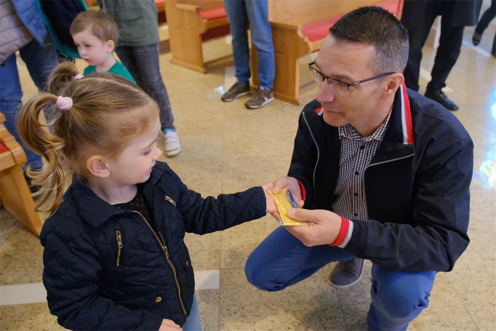 Tata moj, a svaki je tata dobio prigodni poklon od svog djeteta: kemijsku olovku s posvetom i molitvu svetom Josipu za obitelj.