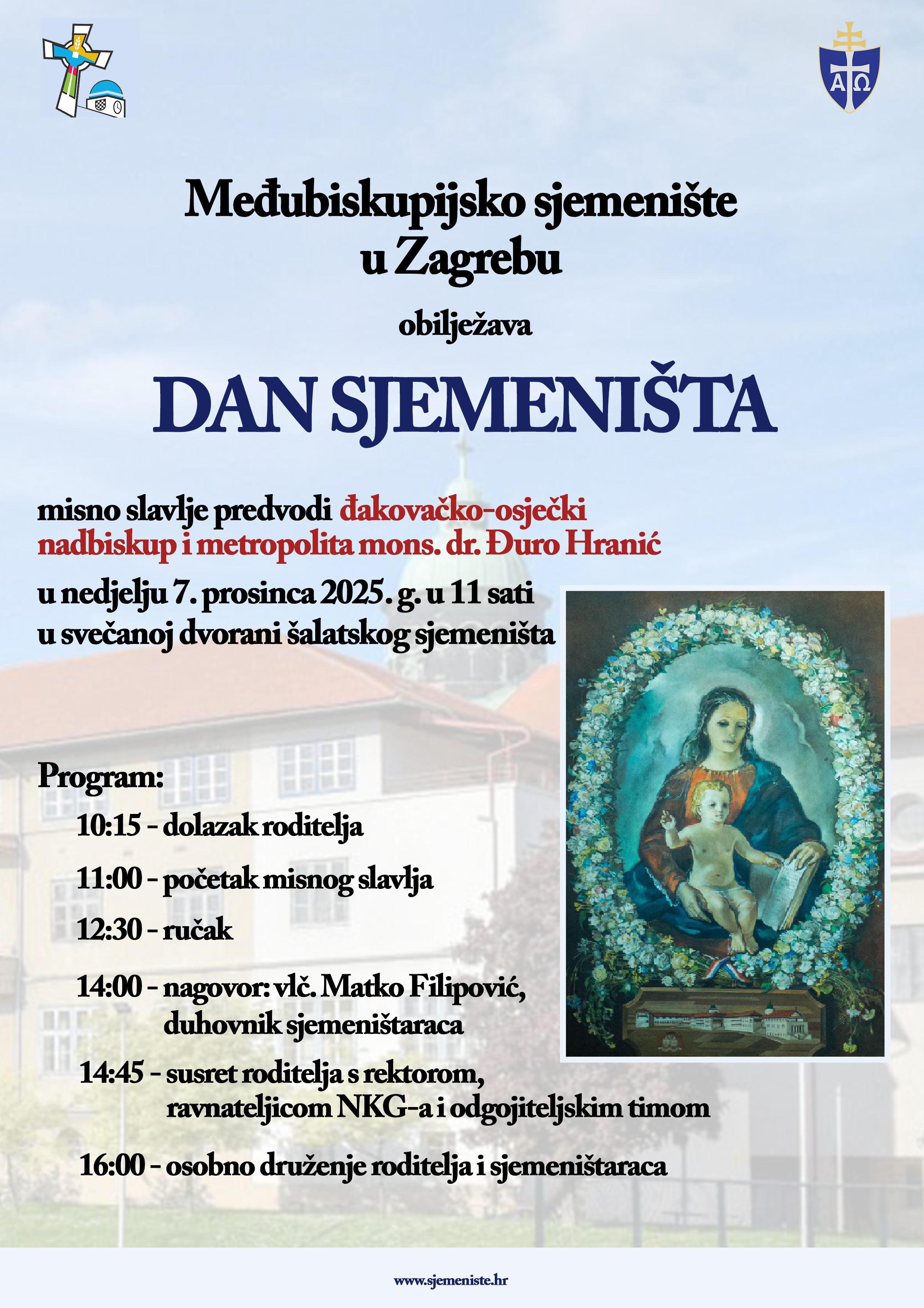 Na drugu nedjelju došašća, 7. prosinca 2025., đakovačko-osječki nadbiskup i metropolit mons. Đuro Hranić predvodit će euharistijsko slavlje u prostorima svečane dvorane Međubiskupijskog sjemeništa u Zagrebu s početkom u 11 sati prigodom proslave Dana sjemeništa.