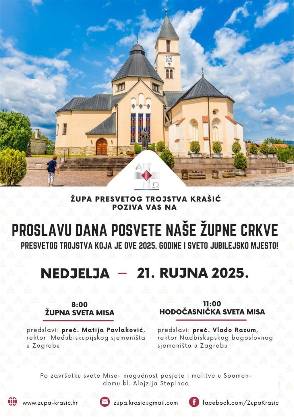 Obljetnica posvete župne crkve u Župi Presvetog Trojstva u Krašiću održat će se u nedjelju 21. rujna.