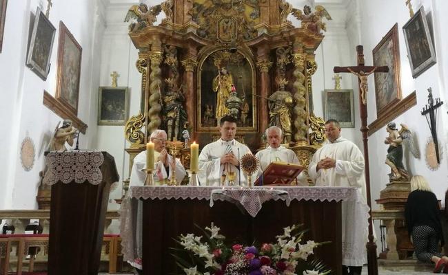 Nedjeljnja proslava započela je jutarnjom svetom misom u 7.30 koju je predvodio župnik vlč. Darko. U potpuno ispunjenoj crkvi, središnju svetu misu u 11 sati predvodio je vlč. Branko Fresl u koncelebraciji sa župnikom vlč. Darkom te našim dragim franjevcima trećoredcima fra Bernardom Rubinićem i fra Tomislavom Kerom. Vlč. Branko rodom je iz susjedne župe svete Barbare u Rudama, te je odmah na početku euharistijskog slavlja izrazio veliko zadovoljstvo što ima priliku biti za oltarom u crkvi koju je posjećivao sa roditeljima u djetinjstvu.