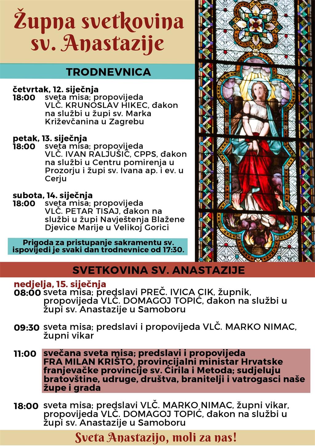 Župa sv. Anastazije mučenice u Samoboru u nedjelju 15. siječnja proslavlja svoju nebesku zaštitnicu.