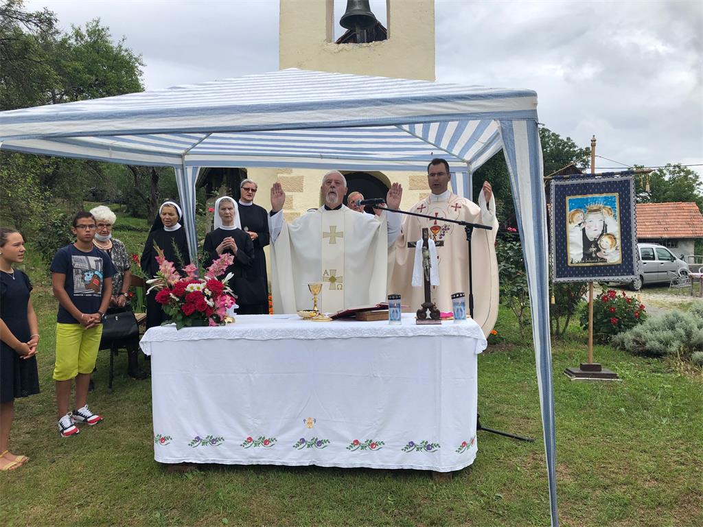 Pozdrav dobrodošlice okupljenima je uputio upravitelj župe vlč. Ivan Vučak, koji je ujedno istaknuo radost zbog dolaska mons. Nikole Kekića i časnih sestara pripadnica triju redovničkih družbi; sestre Bazilijanke, sestre Milosrdnice i sestre Služavke malog Isusa u ovo nenaseljeno žumberačko selo. Križevački vladika u miru mons. Nikola Kekić uveo je u euharistijsko slavlje te istaknuo važnost okupljanja oko lika i djela svete Jelene Križarice koju je Gospodin darovao.