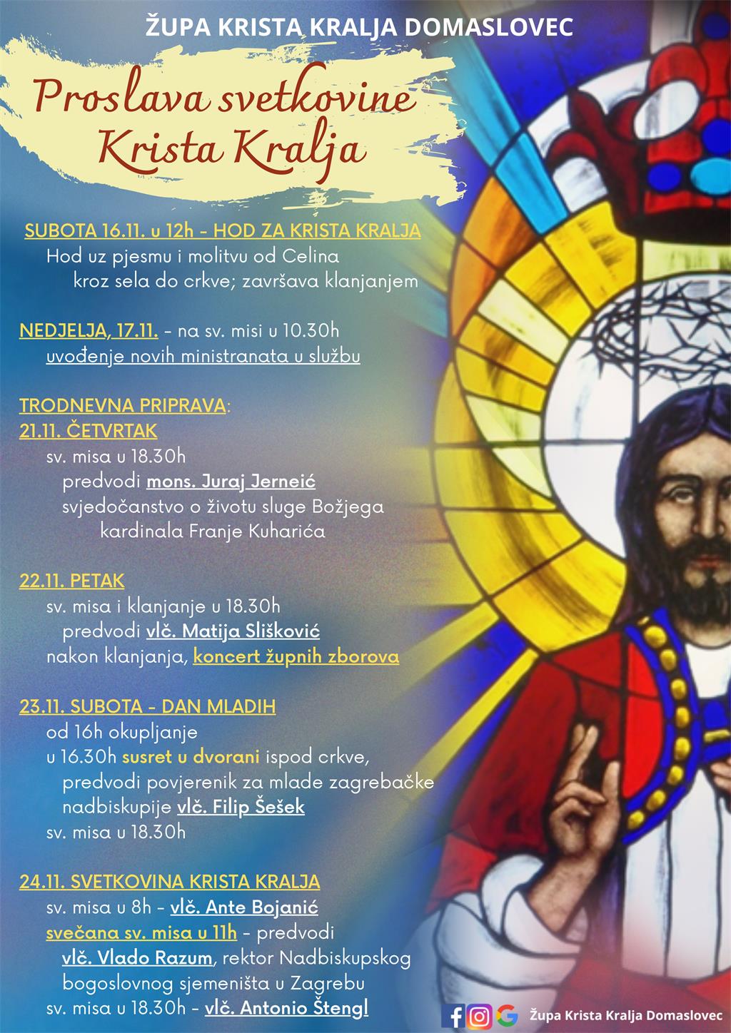 U nedjelju 24. studenog, na svetkovinu Krista Kralja, župa u Domaslovcu proslavit će svoju župnu svetkovinu.