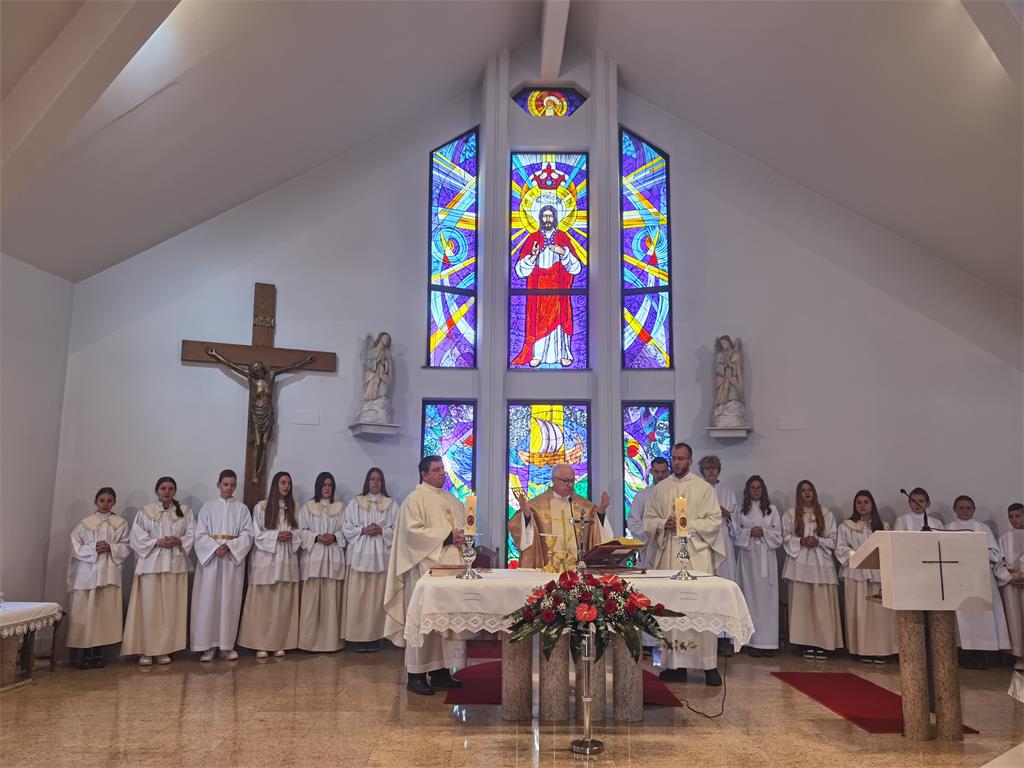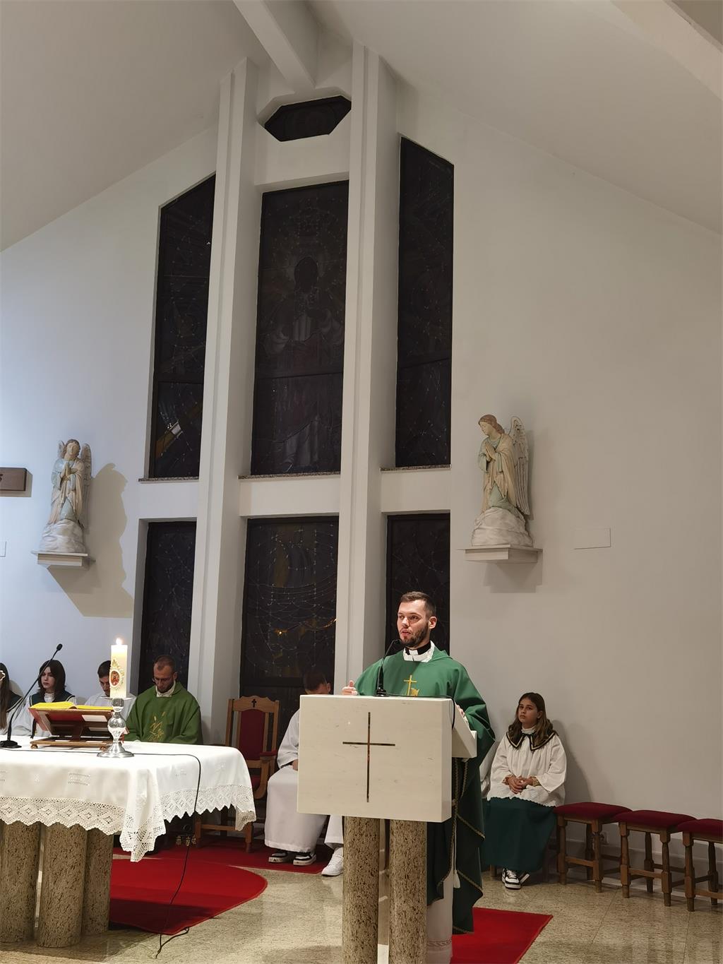 Večernju svetu misu predvodio je vlč. Antonio Štengl, domaći sin susjedne Župe sv. Anastazije u Samoboru, na službi župnog vikara u Župi sv. Vida mučenika u Brdovcu.