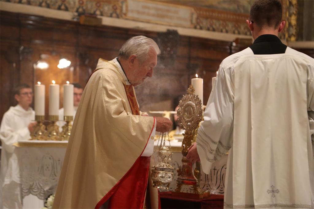 Euharistijsko slavlje na hrvatskom jeziku predvodio je p. Mihály Szentmártoni, SJ, u povodu 50. godišnjice svojega svećeničkoga ređenja. Szentmártoni je profesor emeritus Papinskog sveučilišta Gregoriana i bivši duhovnik Papinskog hrvatskog zavoda sv. Jeronima. Uz njega, koncelebrirao je rektor preč. Marko Đurin te četrdesetak hrvatskih i drugih svećenika koji su na službi ili studiju u Rimu među kojima su bili: mons. Hrvoje Škrlec i mons. Mario Popović iz Državnog Tajništva Svete Stolice, p. Željko Paša, SJ, dekan na Papinskom orijentalnom institutu, don Adam Sycz, rektor Papinskog poljskog instituta, don Pavol Zvara, rektor Papinskog slovačkog zavoda sv. Ćirila i Metoda, don Ante Dražina, iz Dikasterija za biskupe, don Marko Škraba, vicerektor Zavoda i p. Alan Modrić, duhovnik Zavoda.