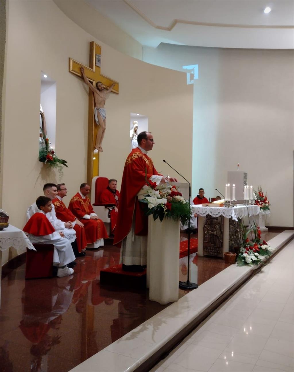 U upućenoj homiliji vlč. Hegedušić osvrnuo se na život sv. Mateja, stavljajući u središte Matejevu poruku kako je Isus jedini spasitelj svijeta i čovjeka. Osvrćući se na obraćenje carinika Mateja potaknuo je sve nazočne na osobno obraćenje i sigurnost prihvaćenosti u ljubavi i milosrđu nebeskog Oca. Također je istaknuo kako primjer apostola Mateja potiče na radikalno nasljedovanje Krista, znajući kako se pravo blago nalazi jedino u osobi Isusa Krista i njegovu Kraljevstvu. Na kraju homilije zahvalio je svim župljanima što ga prate svojim molitvama te potaknuo obitelji župe da budu žarke u vjeri i u crkvenom služenju, pospješujući tako nastanak i razvoj novih posvećenih zvanja.