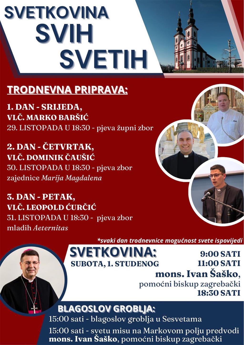 Župa Svih svetih u Sesvetama proslavit će svoju župnu svetkovinu u subotu 1. studenoga. Središnje misno slavlje u 11 sati predvodit će zagrebački pomoćni biskup mons. Ivan Šaško.