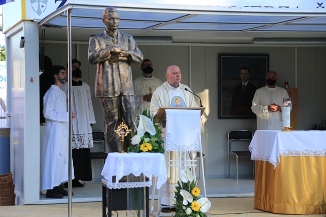 Na početku svoje propovijedi preč. Frkonja podsjetio nas je na životni put našeg zaštitnika bl. Ivana Merza, a potom se osvrnuo na riječi svetog Ivana Pavla II. prilikom beatifikacije blaženog Ivana Merza u Banja Luci 22. lipnja 2003. godine, koji prikazuje njegov lik ovim riječima: "Krist Isus svjetlo je koje prosvjetljuje svakog čovjeka koji dolazi na ovaj svijet i želi da njegovi učenici budu svjetlo svijeta i sol zemlje. Svjetlo Kristovo sjaji u Merzu. Njega vam želim predložiti kao svjedoka Kristova i zaštitnika, ali i kao pratitelja na putu u vašoj povijesti. On će biti od danas uzor mladima i primjer za vjernike laike."