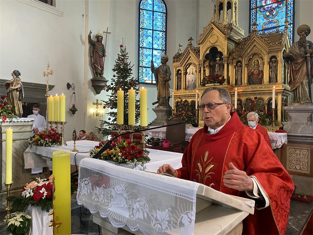 "Danas, na dan vašega patrona, svatko od vas župljanja trebao bi si posvijestiti tko je on, odnosno da je suživotnik s Isusom Kristom, stvoren na sliku Božju," rekao je propovijedajući monsinjor Sekelj. Dodao je da je "Bog ušao u našu stvarnost otkrivajući nam se u svom Sinu, Isusu Kristu, progovorivši ljudskim jezikom i ukazavši nam na uzročnika našeg postojanja. Uprisutnivši se u nama otkrio nam je i sve bogatstvo darovanog nam života."