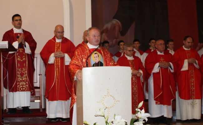 Na tragu prvog i drugog čitanja od liturgijskog spomena bl. Alojzija Stepinca vlč. Puškarić je istaknuo dva dara ili ploda koja je Bog obojici velikana providio: ustrajnost u trpljenju te dar utjehe. „Naši su kardinali povezani ne samo iskrenim i dubokim vezana kršćanskog bratstva već i karizmom koju su dijelili. Obojica su ustrajali u trpljenju, tjelesnom, psihičkom i duhovom, učinivši od njega mjesto susreta s Raspetim Kristom. Također, obojica su imala dar utjehe. Budući da su doživjeli utjehu Milosrdnog Krista, koja ih je sačuvala od svake tjeskobe, osvetoljubljivosti i srdžbe, znali su radosno tješiti druge“, zaključio je vlč. Puškarić.