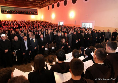 Svečanim akademskim činom u velikoj dvorani Međubiskupijskoga sjemeništa na zagrebačkoj Šalati proslavljen je u petak 11. ožujka Dan Katoličkoga bogoslovnog fakulteta (KBF) Sveučilišta u Zagrebu. Na svečanosti je diplome primilo 169 studentica i studenata, od čega je njih 48 prvi puta završilo studij po bolonjskome sustavu studiranja. Promovirani su i magistri teoloških znanosti Tvrtko Beus, Kristijan Gatarić i Zdenka Prkačin, a stupanj licencijata teoloških znanosti postigli su Danijel Crnić, Ilija Matanović, Iva Mršić Felbar i Eugen Teklić. Na početku svečanosti nazočne je pozdravio dekan fakulteta prof. dr. Josip Oslić, a prigodnu je riječ i čestitke uputio veliki kancelar KBF-a zagrebački nadbiskup kardinal Josip Bozanić (cijeli govor pročitajte ovdje), koji je podsjetio da smo "kao kršćani pozvani uvijek spremno dati odgovor svakome tko od nas zatraži obrazloženje nade koja je u nama". "Duh Istine, koji je Duh utjelovljenog Sina Božjega, daje našoj konačnoj naravi pristup u teologiju. Dar te čudesne uraštenosti naše spoznaje i Božje spoznaje, između ostalog, omogućuje kršćanstvu da se oslobodi balasta koji uvjetuje njegovu vjerodostojnost. Mislim u prvom redu na nepriličnu isključivost između vjere i razuma, između naravi i milosti, čime se dovodi do neutemeljenog isključivanja religije i dosljedno teologije iz javnosti. Ali mislim i na dvosmisleni dualizam između teologije i pastorala, iz kojega proizlazi kao da vjera mišljena i vjera življena mogu postojati neovisno jedna od druge", kazao je kardinal. S tim u vezi kardinal je naglasio važnost nastojanja KBF-a u produbljivanju praktične teologije, "očitujući neodvojivu vezu između sustavnog i kritičkog razmišljanja i vjere crkvene zajednice", dodajući kako će "navješćivanje kršćanskih otajstava u njihovim antropološkim, društvenim i kozmološkim implikacijama" pomoći "nadvladati bolnu pukotinu između vjere i života suvremenih kršćana". "Stoga ispravno shvaćeno jedinstvo kršćanskoga iskustva osigurava plodnost teološkoga razmišljanja", kazao je kardiinal dodajući da, "polazeći od tako usklađenog stava, teologija može s pravom ući u javnu raspravu, uzajamno djelujući i ulazeći u ravnopravni dijalog s drugim disciplinama i znanjima". Zagrebački je nadbiskup naglasio i kako je KBF, "uočavajući potrebe današnjeg čovjeka", pozvan "u interdisciplinarnoj suradnji dati svojstven doprinos koji može iznijeti na vidjelo pitanja o smislu na koja sama stručna sprema nije uvijek kadra odgovoriti". Kardina Bozanić je podsjetio i na ovogodišnji pohod Svetoga Oca Hrvatskoj dodajući kako su prisutnost pape Benedikta XVI., njegovo svjedočanstvo i njegovo naučavanje orijentacijske točke za zadaće istraživanja, predavanja i studija toga teološkog fakulteta. Pozdravne su riječi uputili i rektor Sveučilišta u Zagrebu prof. dr. Aleksa Bjeliš, koji je istaknuo značaj KBF-a u povijesti Zagrebačkog sveučilišta, zatim dekan KBF-a u Đakovu prof. dr. Pero Aračić, dekan Filozofskoga fakulteta Družbe Isusove prof. dr. Ivan Šestak, dekan KBF-a u Sarajevu prof. dr. Pavo Jurišić, predstojnik Katehetskoga instituta KBF-a prof. dr. Josip Šimunović, dekan Teološkog fakulteta u Ljubljani prof. dr. Stanko Gerjolj, te doc. dr. o. David Perović s Pravoslavnoga bogoslovnog fakulteta Sveučilišta u Beogradu. Iscrpno je izvješće o životu i radu KBF-a u protekloj godini podnio dekan Oslić istaknuvši kako KBF u ovoj akademskoj godini sa svojim područnim studijem, Teologijom u Rijeci, ima ukupno 1077 upisanih redovitih studenata, a na poslijediplomski znanstveni studij licencijata i doktorata ukupno je upisano 43 studenata. Na svečanosti – kojoj su uz same diplomante i njihove obitelji i prijatelje nazočili i predstavnici državnih i gradskih vlasti, biskupi, predstavnici ostalih vjerskih zajednica u RH, dekani zagrebačkih fakulteta, kao i profesori, djelatnici i studenti KBF-a – uručene su i nagrade najboljim studentima, a na kraju svečanosti je uime svih diplomantica i diplomanata riječi zahvale uputio Dario Paviša. (iu, gk) Više pročitajte u tiskanome izdanju Glasa Koncila od nedjelje 20. ožujka.