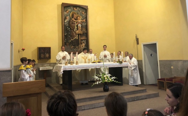 Na spomendan Blaženice svečanu svetu misu predslavio je mladomisnik vlč. Matija Novački u koncelebraciji s vlč. Damirom, vlč. Ivanom te mladomisnikom Karlom i mnoštvom ministranata. U prigodnoj homiliji osvrnuo se na riječi Proroka: „Zaručit ću te sebi u vjernosti i ti ćeš spoznati Gospodina“. On nas zaručuje, obvezuje, želi našu sreću, tugu, talente, nadodao je vlč. Matija. Želi da Mu cijelog sebe damo u vjernosti kako bi sa sv. Tomom mogli reći: „Gospodin moj i Bog moj!“ Nadalje je vlč. Matija protumačio riječi psalmista: „Naraštaj naraštaju kazuje djela tvoja…“ Isus se nikada ne umara odgajati nas, strpljivo čeka da se izdignemo iz padova, čeka da Mu dođemo kada smo zaokupljeni sobom. Tako se i mi ne smijemo umarati odgajati one koje nam je Gospodin dao na naš životni put. Nauči nas da poput Blaženice, Tvojom milošću i jakošću, prigrlimo Križ te se radujemo plodovima koji proizlaze iz Križa, na kraju je rekao vlč. Matija.
